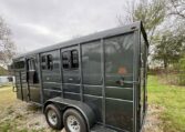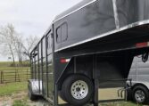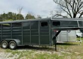 New Calico 3 horse slant load gooseneck, 18′ long x 6’8″ wide x 7′ tall, 4′ short wall, solid wall dressing room, dome lights, drop-down windows head side, 3 saddle racks, 16-inch 10-ply radial tires, torflex axles, window in dressing room door, brakes on both axles. Includes rubber package — mats on floor, rubber on walls, and spare tire. Dressing room has frame/braced for A/C in ceiling.