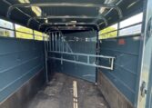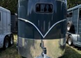 Calico 2 horse slant load trailer, 6′ wide x 6’6″ tall x 12′ long, 3500# axles, swing wall dressing room, 16-inch 10-ply tires, 24″ gravel guard, window in dressing room door, dome lights in dressing area and horse area, V-chrome on the front, 2 saddle racks, torflex axles, rubber on walls, mats, spare.