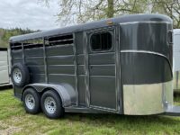 Get an all aluminum trailer for under $17,000! This is a brand new straight-load Stablemate, has saddle racks in the front but no dressing room wall. Trailer measures 12.6 x 7.6 x 6.9, 3500 lb axles, drop-down windows streetside, 32" access door curb [...]