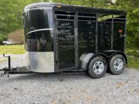 Custom color added for only $500! 2 horse slant with swing wall dressing room, 6' wide x 6'6" tall x 12' long, 2400 lbs, 3500# axles, 16-inch 10-ply tires, 24" gravel guard, window in dressing room door, dome lights in horse area and dressing room, [...]